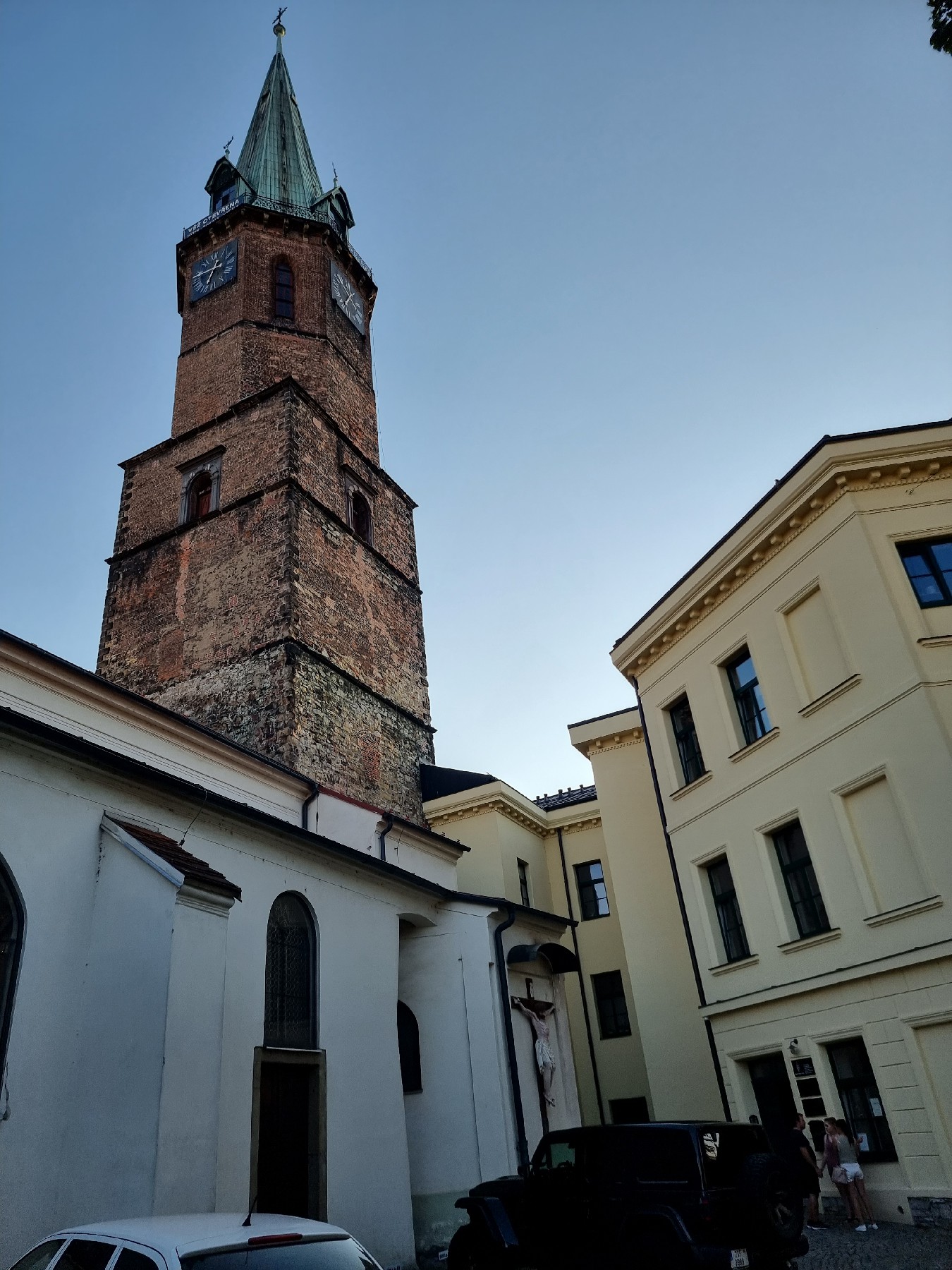 The Church of St. John the Baptist is located in Frýdek-Místek near Frýdek Square. It is a single-nave basilica with chapels and a crypt, with its Gothic core likely dating back to the second half of the 14th century. The dominant feature of the church is the prism-shaped tower dating from the late 16th century. The church has been damaged several times by fires, which resulted in numerous modifications. It currently serves as a parish church with a permanent exhibition titled "Glimpses into the History of the Frýdek Parish" in the upper part of the tower.
